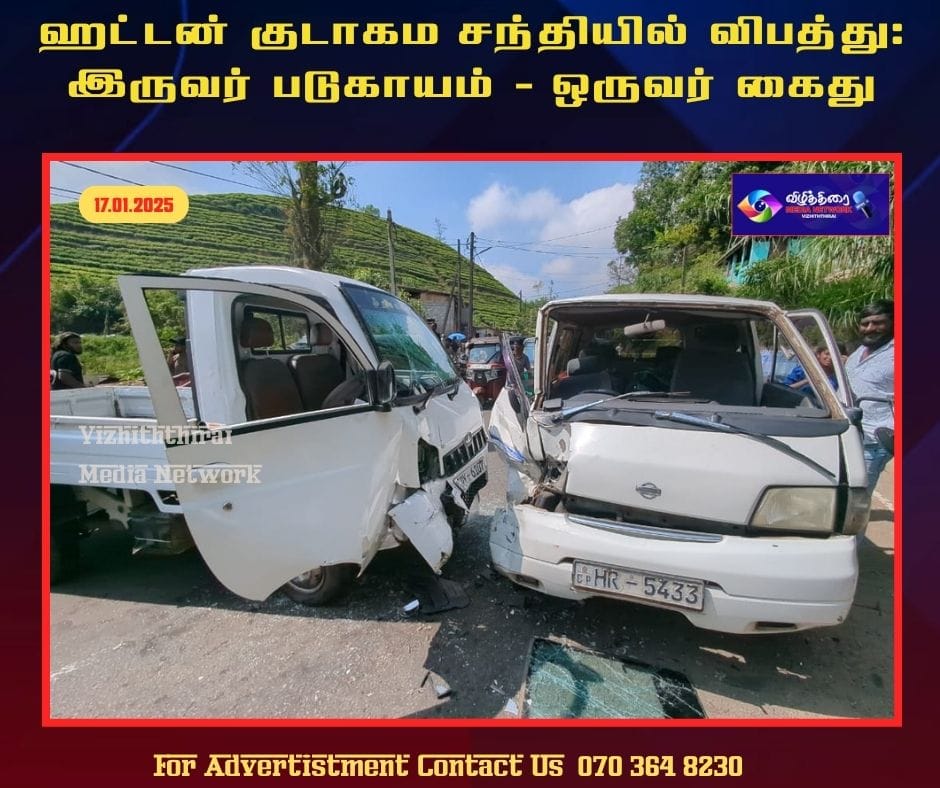 விபத்தில் லொறியும் வேனும் பலத்த சேதமடைந்துள்ளன, மேலும் லொறியின் சாரதி சந்தேகத்தின் பேரில் ஹட்டன் பொலிஸாரால் கைது செய்து விசாரணை நடத்தி வருகின்றனர்.