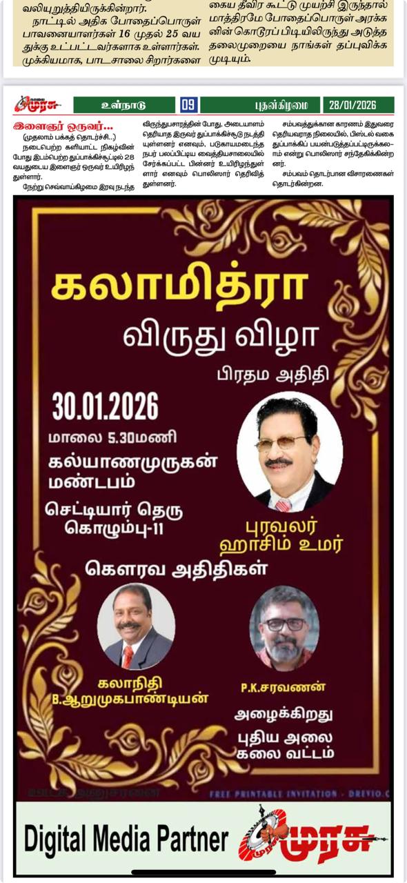 மொத்தமாக 50 பேருக்கு விருது வழங்கும் இவ்விழா வரும் 30ஆம் திகதி மாலை 5.30.மணிக்கு கொழும்பு-11,செட்டியார் தெருவில் அமைந்துள்ள கல்யாண முருகன் மண்டபத்தில் நடைபெறவுள்ளது.
