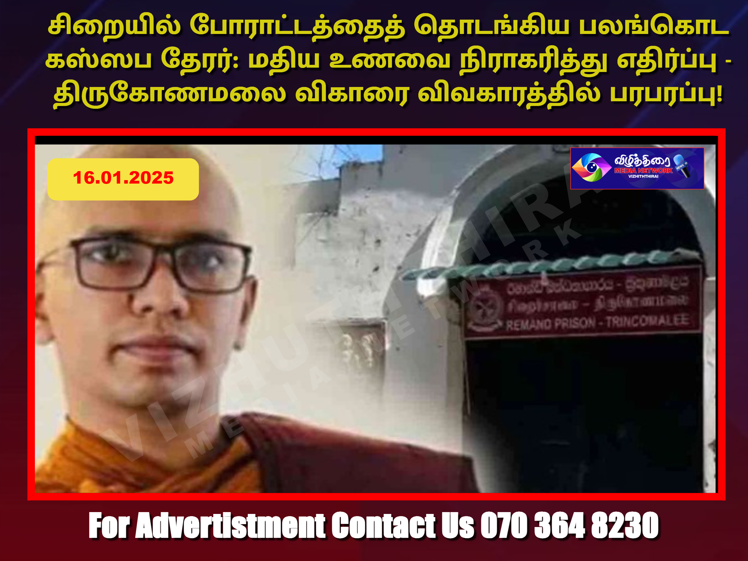 திருகோணமலை கோட்டை வீதியில் அமைந்துள்ள ஸ்ரீ சம்புத்த ஜயந்தி போதிராஜ விகாரைக்குச் சொந்தமான காணியில் புத்தர் சிலையொன்றை ஸ்தாபிக்கும் போது ஏற்பட்ட அமைதியின்மை தொடர்பில், பலங்கொட கஸ்ஸப தேரர் உள்ளிட்ட நான்கு பிக்குகள் மற்றும் ஏனைய 05 சந்தேக நபர்களை எதிர்வரும் 19 ஆம் திகதி வரை விளக்கமறியலில் வைக்குமாறு திருகோணமலை நீதவான் நீதிமன்றம் நேற்று உத்தரவிட்டிருந்தது.