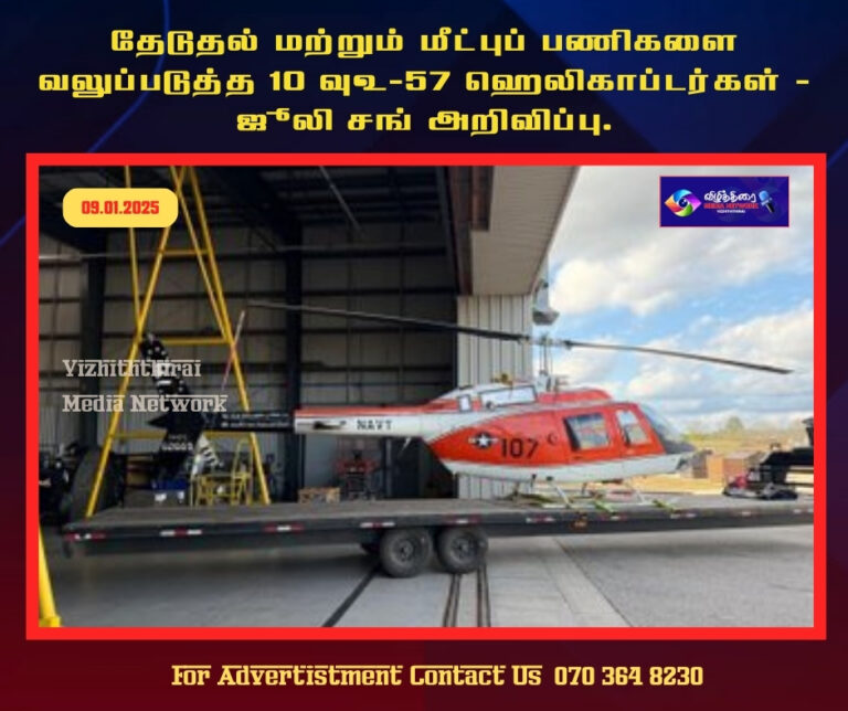 அரசியல் தேடுதல் மற்றும் மீட்புப் பணிகளுக்காக இலங்கைக்கு 10 ஹெலிகாப்டர்களை இலவசமாக வழங்குகிறது அமெரிக்கா. January 9, 2026 | 3 months முன்பு