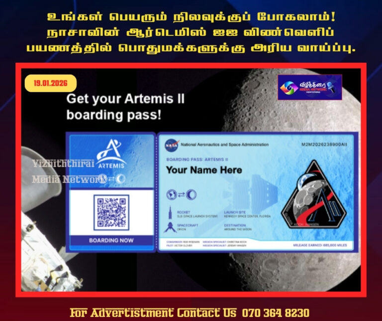 Breaking Latest Updates உலகம் முக்கிய செய்திகள் “உங்கள் பெயரும் நிலவுக்குப் போகலாம்! நாசாவின் ஆர்டெமிஸ் II விண்வெளிப் பயணத்தில் பொதுமக்களுக்கு அரிய வாய்ப்பு!” January 19, 2026 | 2 months முன்பு