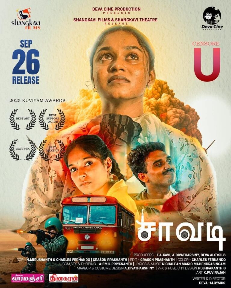 Latest Updates இலங்கை சினிமா உள்ளூர் செய்திகள் சினிமா முக்கிய செய்திகள் சாவடி திரைப்படம் 26 ஆம் திகதி முதல் 14 திரையரங்குகளில் September 20, 2025 | 7 months முன்பு