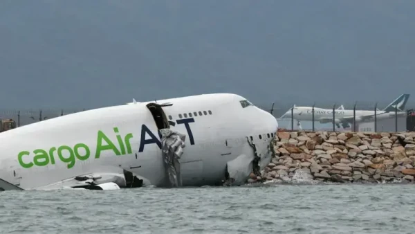 ஹோங்கொங் சர்வதேச விமான நிலையத்தில் சரக்கு விமானம் ஒன்று ஓடுபாதையில் இருந்து விலகி, அருகிலுள்ள வாகனத்தில் மோதி கடலில் விழுந்துள்ளது.