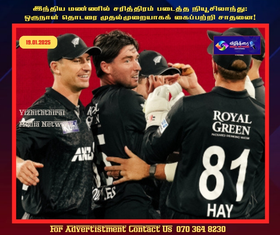 இந்தியாவுக்கு எதிரான மூன்றாவது மற்றும் தீர்மானமிக்க ஒருநாள் போட்டியில் 41 ஓட்டங்கள் வித்தியாசத்தில் வெற்றி பெற்ற நியூசிலாந்து அணி, இந்திய மண்ணில் முதல்முறையாக ஒருநாள் தொடரைக் கைப்பற்றி வரலாற்றுச் சாதனை படைத்துள்ளது.