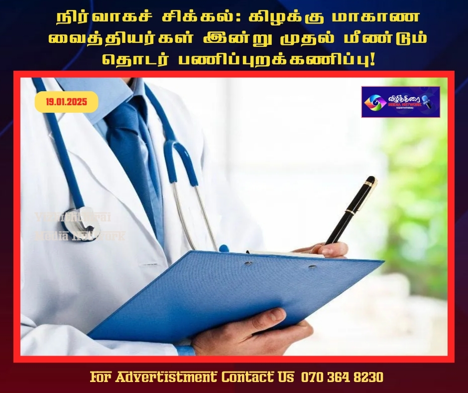 கிழக்கு மாகாணத்தில் உள்ள சகல அரச வைத்தியசாலைகளிலும் உள்ள வைத்தியர்கள் இன்று (19) முதல் மீண்டும் பணிப்புறக்கணிப்பை முன்னெடுக்க தீர்மானித்துள்ளதாக அரச வைத்திய அதிகாரிகள் சங்கம் தெரிவித்துள்ளது.