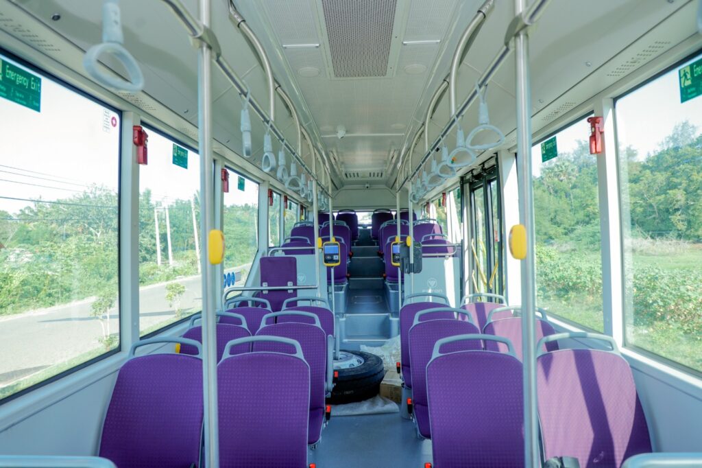 33 இருக்கைகளைக் கொண்ட இந்தப் பேருந்தில் ஒரே நேரத்தில் 80 பயணிகள் பயணிக்க முடியும்.