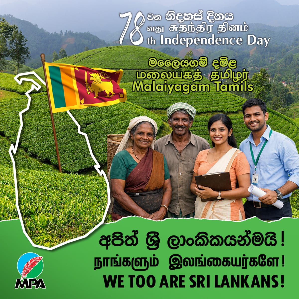 இலங்கை அந்நியராட்சியில் விடுபட்டு சுதந்திர நாடான போதும்; மலையகத் தமிழ் மக்களை அந்நியராகப் பார்க்கும் மனநிலையே இலங்கைக்குள் காணப்படுகிறது. அண்மைய தித்வா புயல் அனர்த்தத்தின் பின்னதான மீட்பு மீள்கட்டுமான நடவடிக்கைகளில் அவை தெளிவாக வெளிப்படுகிறது. இலங்கை அரசு அறிவித்துள்ள மீட்பு நிவாரணங்கள் முதல் மீள்கட்டமைப்பு அறிவிப்புகள்வரை மலையக மக்கள் புறக்கணிக்கப்பட்டுவருகின்றனர். எனவே இந்தப் புறக்கணிப்பை எடுத்துக்காட்டும் பொருட்டும்இ மலையகத் தமிழ் மக்களையும் இலங்கையர்களாக இணைத்து மீள்கட்டுமான அபிவிருத்தியை முன்னெடுக்க வலியுறுத்தியும் மலையகப் பகுதிகளில் அனர்த்தம் இடம்பெற்ற இடங்களில் நின்று “நாங்களும் இலங்கையர்களே” என இலங்கை தேசியக் கொடியை ஏற்றி 78வது சுதந்திர தினத்தை அனுஷ்டிக்க மலையக அரசியல் அரங்கம் அழைப்பு விடுக்கின்றது.