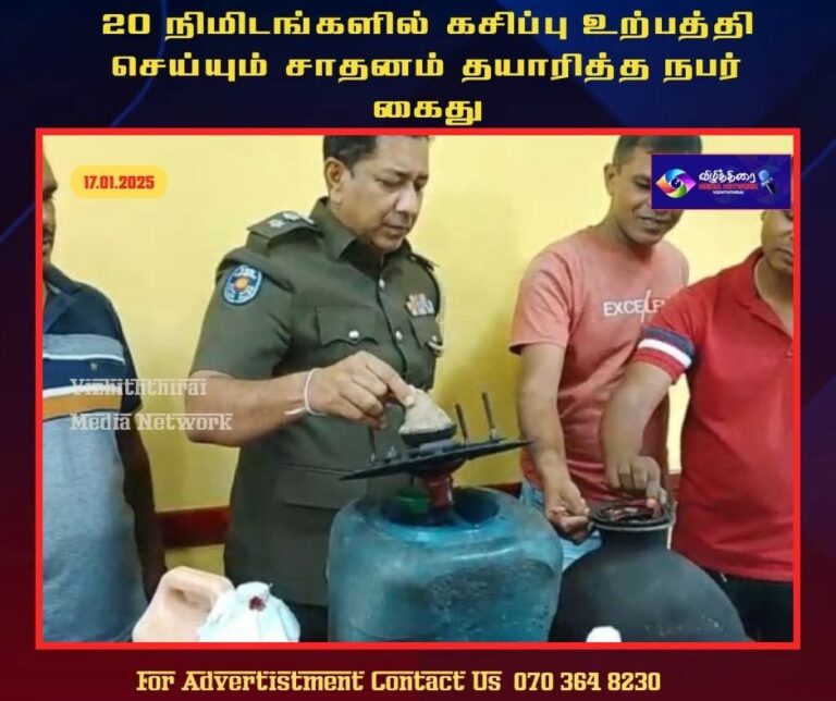Latest Updates உள்ளூர் செய்திகள் முக்கிய செய்திகள் இருபது நிமிடங்களில் கசிப்பு தயாரிக்கக்கூடிய ஒரு சாதனத்தை தயாரித்த ஒருவர் கைது. January 17, 2026 | 3 months முன்பு