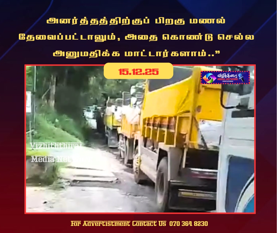 “தித்வா சூறாவளியுடன் நுவரெலியா பிரதேசத்திற்கு ஏற்பட்ட அனர்த்தத்தினால் வீதிகளைப் புனரமைத்தல் மற்றும் கட்டிடங்களைப் பழுதுபார்த்தல் போன்ற பணிகளுக்கு மணல் அத்தியாவசியமாக உள்ள நிலையில், மஹியங்கனையில் இருந்து வலப்பனை ஊடாக சட்டபூர்வமாக மணல் கொண்டு செல்வதற்கு நுவரெலியா பிரிவுக்குப் பொறுப்பான பொலிஸ் அத்தியட்சகர் அனுமதி மறுப்பதாக நுவரெலியா மணல் போக்குவரத்து சங்கத்தின் தலைவர் தினேஷ் கீகனகே (14) அன்று குற்றம் சாட்டியுள்ளார். மணல் கொண்டு செல்வதற்காக சுரங்கம் மற்றும் புவியியல் பணியகத்தால் வழங்கப்பட்ட உரிமத்திற்கு அமைய, மஹியங்கனையில் இருந்து கந்தகெட்டிய, வலப்பனை ஊடாக நுவரெலியாவிற்கு மணல் கொண்டு செல்ல அனுமதி வழங்கப்பட்டிருந்ததாகவும், அதன்படி மணலை கொண்டு செல்லவிருந்த 5 டிப்பர் வண்டிகள், பிரிவுப் பொறுப்பு சிரேஷ்ட பொலிஸ் அத்தியட்சகரின் உத்தரவின் பேரில் கந்தகெட்டிய பொலிஸ் சோதனைச் சாவடிக்கு அருகில் நிறுத்தப்பட்டுள்ளதாகவும் தினேஷ் கீகனகே குறிப்பிட்டார். “