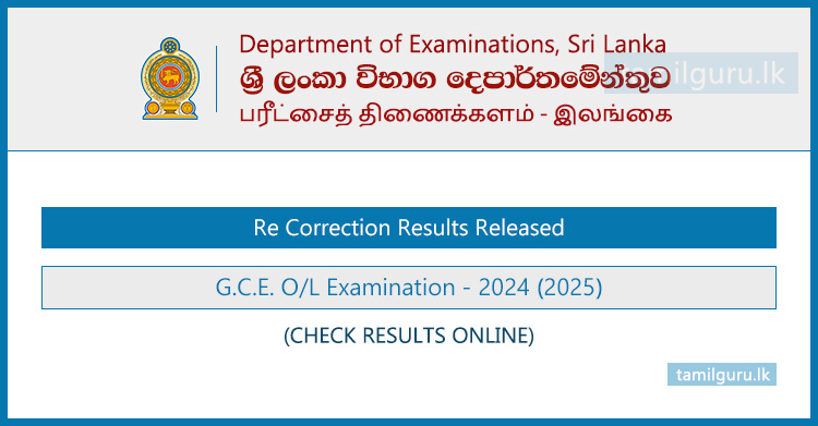 2024 ஆம் ஆண்டுக்கான கல்விப் பொதுத் தராதர சாதாரண தர பரீட்சையின் மீள் மதிப்பீட்டுப் பெறுபேறுகள் வெளியிடப்பட்டுள்ளன.